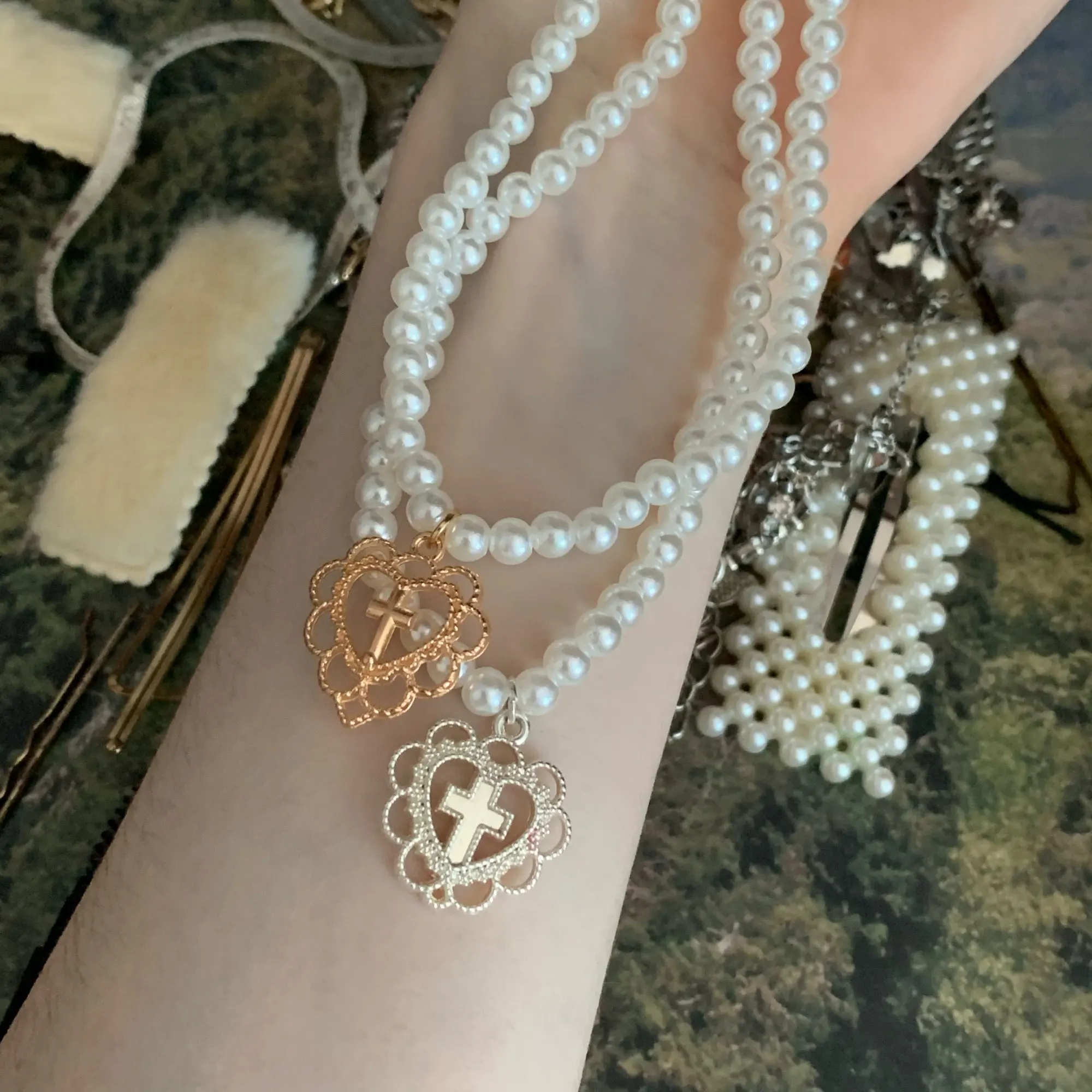 Жемчужное ожерелье с подвеской в виде креста