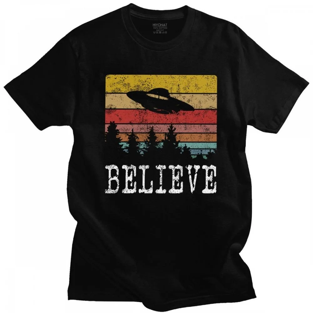 Винтажная классическая мужская футболка с надписью Я хочу верить в НЛО, хлопковая футболка с короткими рукавами, для отдыха, футболка с надписью The X Files, ТВ-футболки, топы, одежда