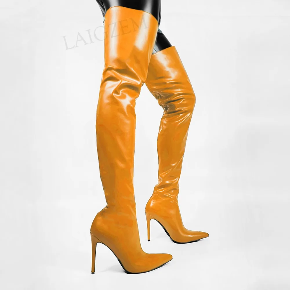 LAIGZEMсексуальные женские сапоги до бедра, высокие сапоги на молни...