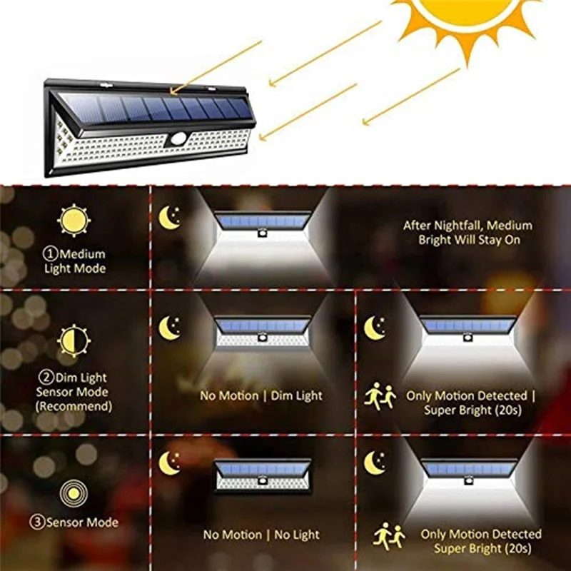 Светодиодный уличный светильник с датчиком движения, 118 светодиодов, настенный светильник с ночным датчиком, лампа на солнечной батарее, экстренный фонарь, внешний водонепроницаемый светильник IP65