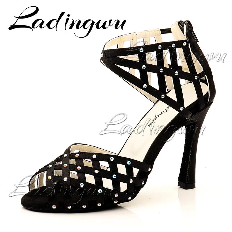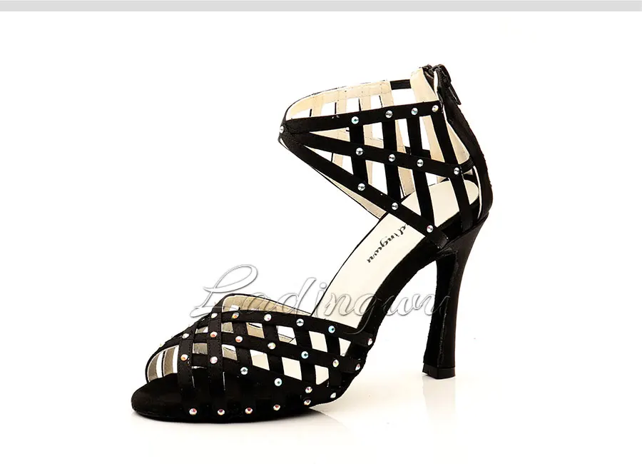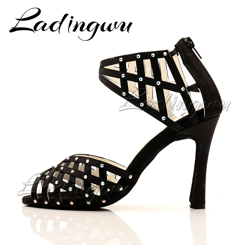 Женские атласные танцевальные туфли Ladingwu, обувь для латиноамериканских танцев, сальса, геометрический дизайн, стразы
