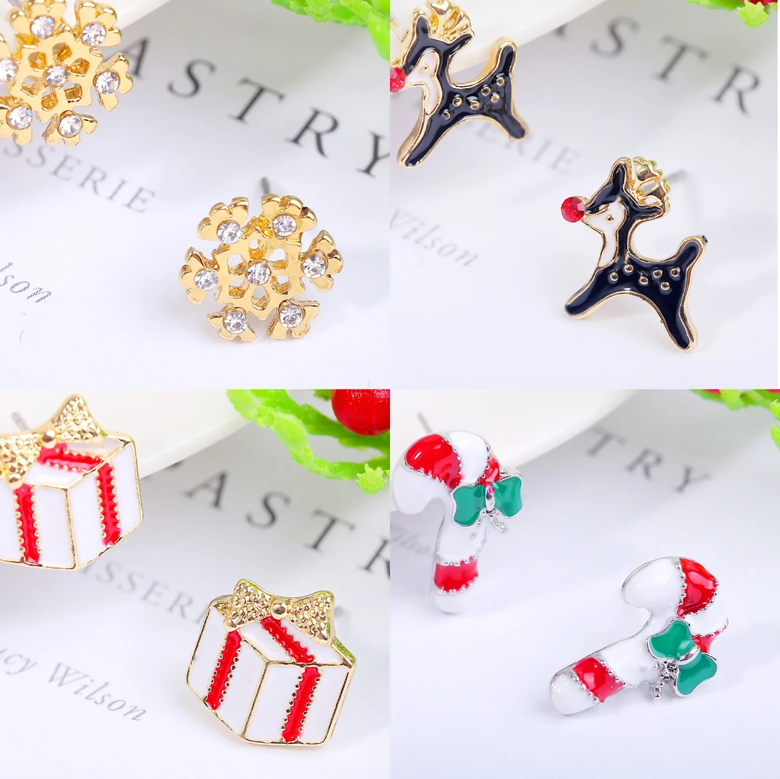Хит продаж, рождественские серьги с новым рождественским ушком, серьги-гвоздики с кристаллами, колокольчиком, снежинкой, рождественской елкой, Ушные Кольца