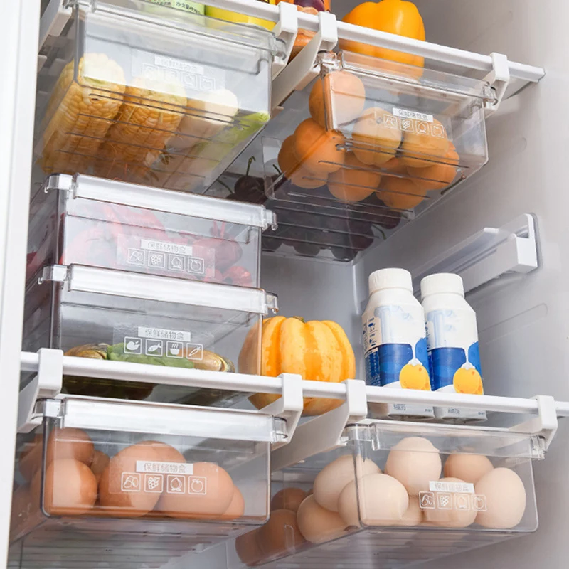 Встроенный ящик для холодильника, компактный пластиковый бытовой контейнер для хранения, Кухонный Контейнер для хранения
