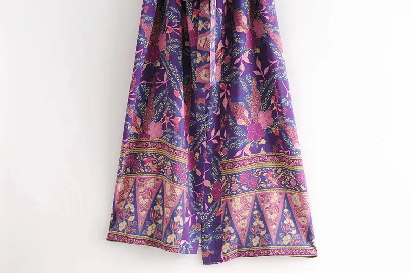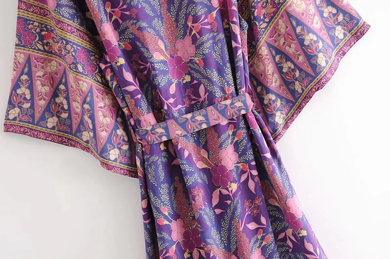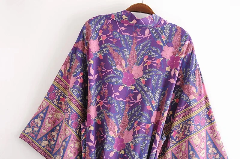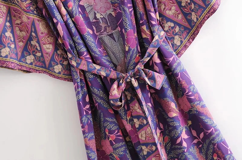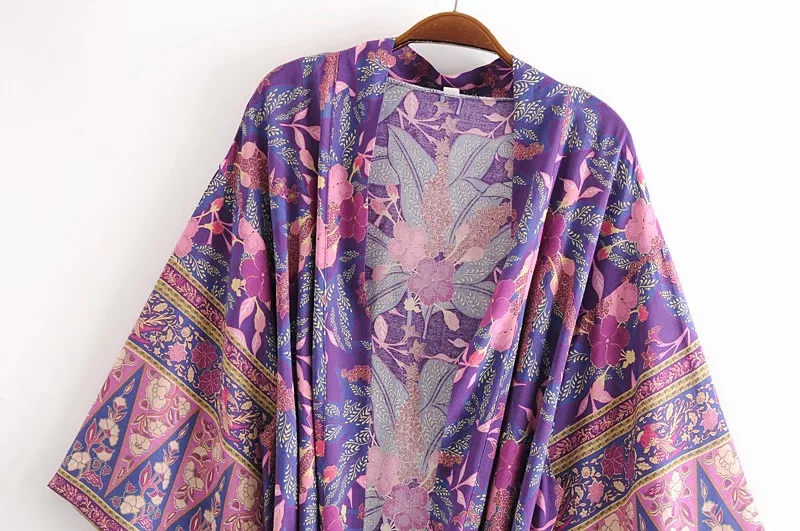 Женское винтажное кимоно с цветочным принтом, фиолетовое богемное к...