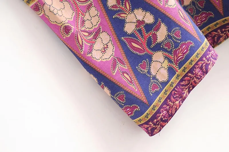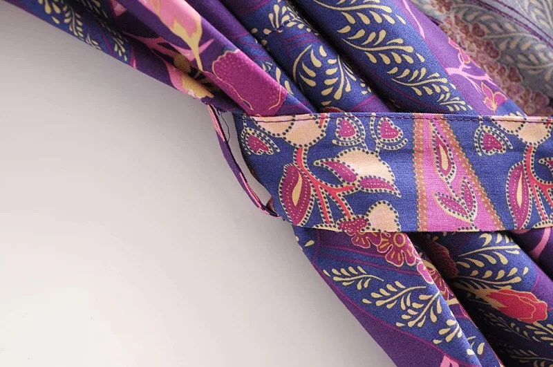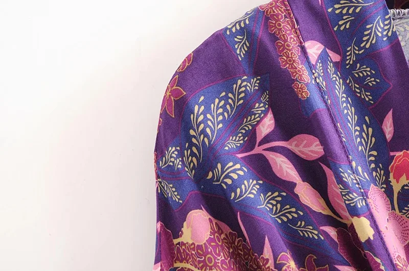 Женское кимоно с цветочным принтом, длинная рубашка фиолетового цвета, с V-образным вырезом, в этническом стиле, с завязками и бантом, длинный кардиган, свободная блузка, топы