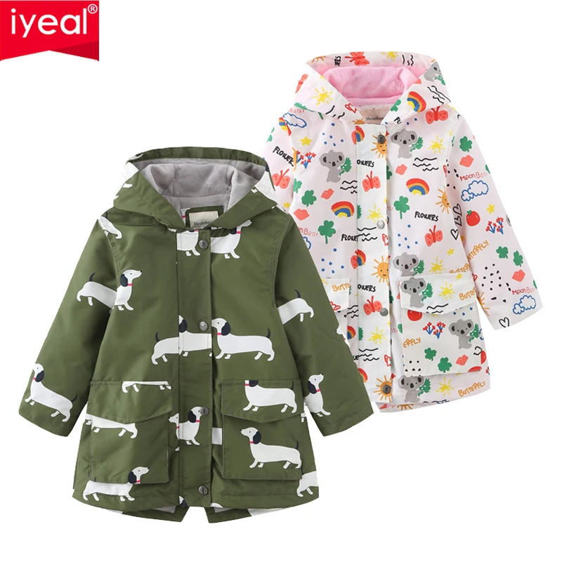 IYEALдетский плащ для мальчиков и девочек Качественная верхняя одежда хлопковая повседневная детская ветровка с капюшоном и рисунком на весну-осень