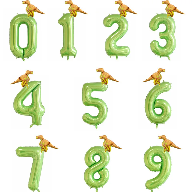 40 дюймов Динозавр зеленые цифры динозавр фольгированные воздушные шары в джунглях фотофольгированные воздушные шары для маленьких мальчиков на день рождения Baby Shower украшения
