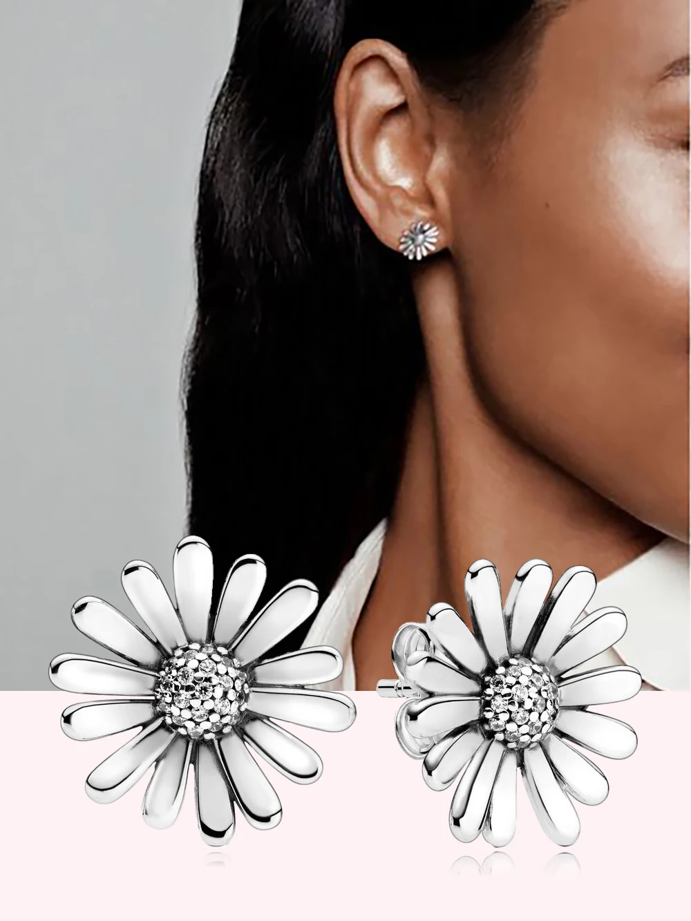 Женские серьги-гвоздики из серебра 925 пробы, в виде цветка маргаритки