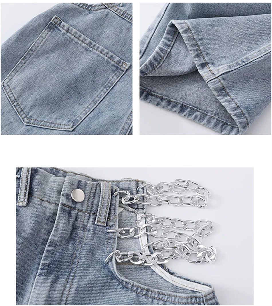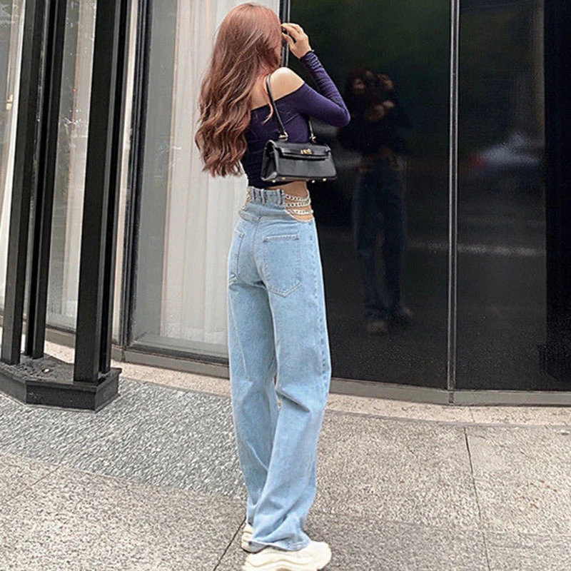 Женские джинсы с широкими штанинами Meqeiss, уличная одежда с боковыми перекрестными цепочками, пикантные элегантные штаны с высокой талией, европейские модные джинсы