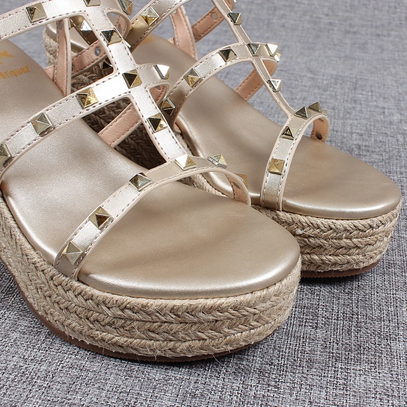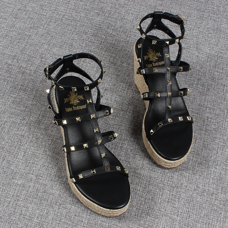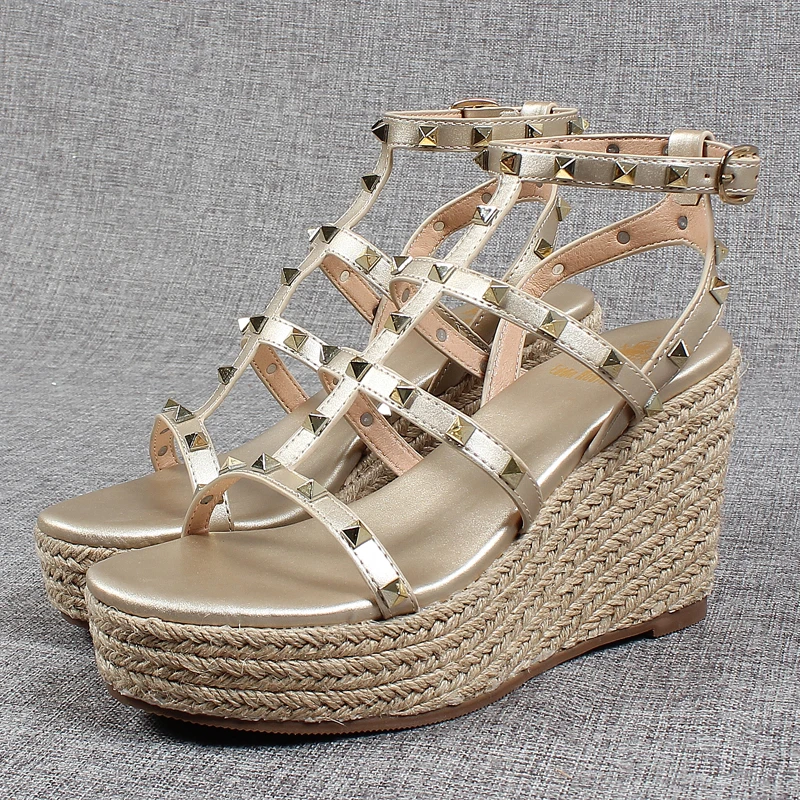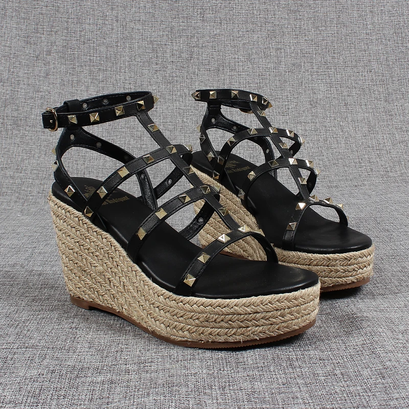Сандалии с шипами; Эспадрильи на платформе; Большие размеры; Коллекция 2020 года; Женская обувь на высоком каблуке; Летняя женская обувь