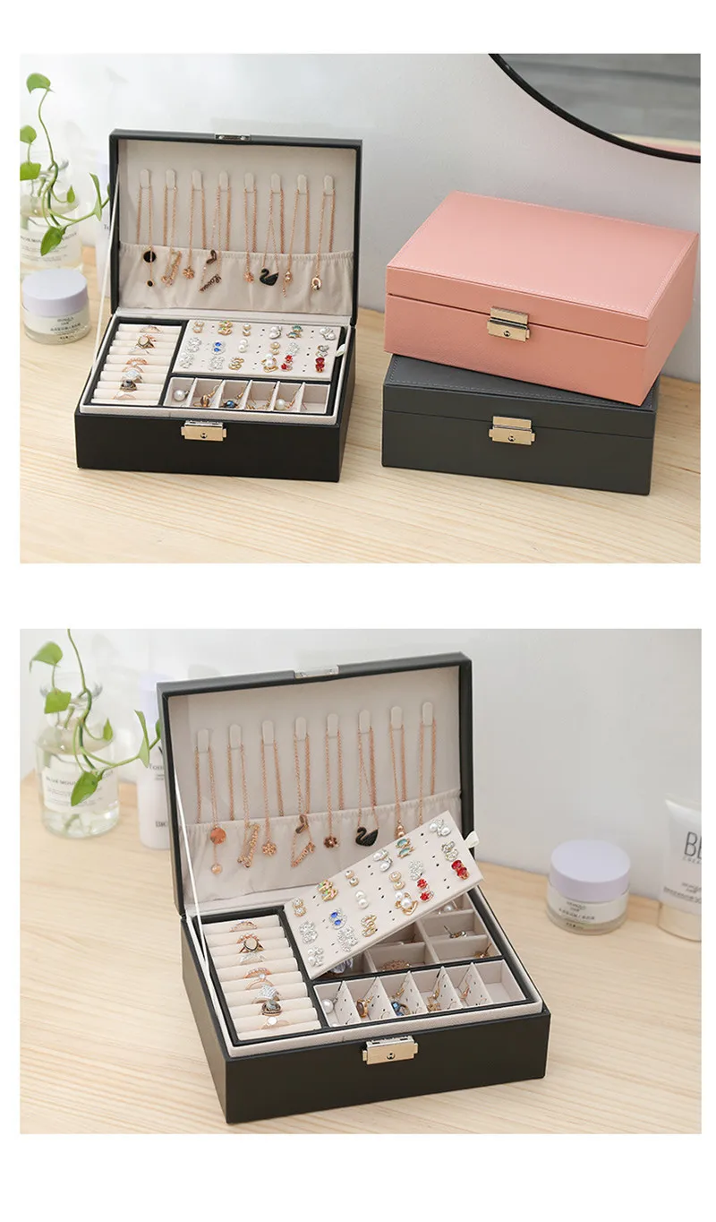 Коробочка для ювелирных изделий, кожаная, двухслойная, большая, многофункциональная