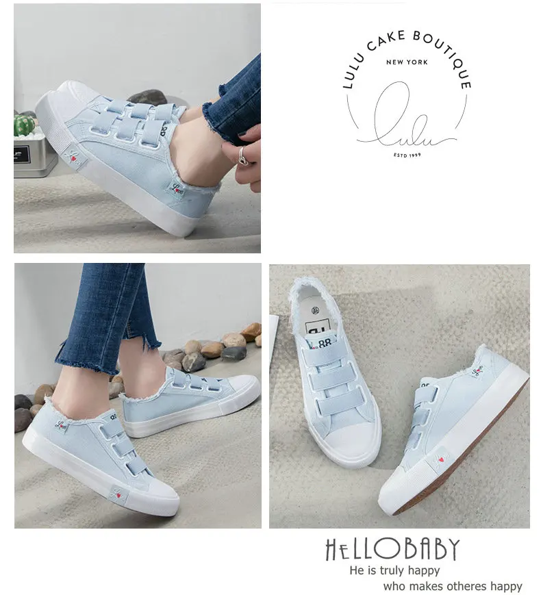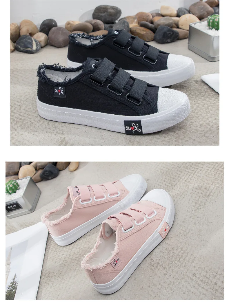 Женские холщовые кроссовки на плоской подошве, удобные дышащие кроссовки на липучке для студентов, новинка 2020