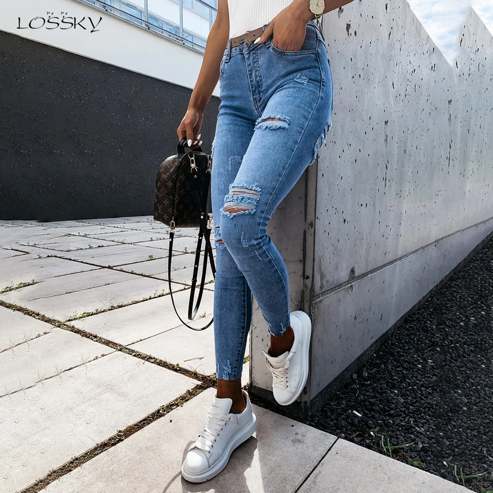 Джинсы женские брюки с дырками модные эластичные синие джинсовые потертые обтягивающие рваные брюки джинсы для женщин осень 2020 одежда, джинсы на резинке с молнией