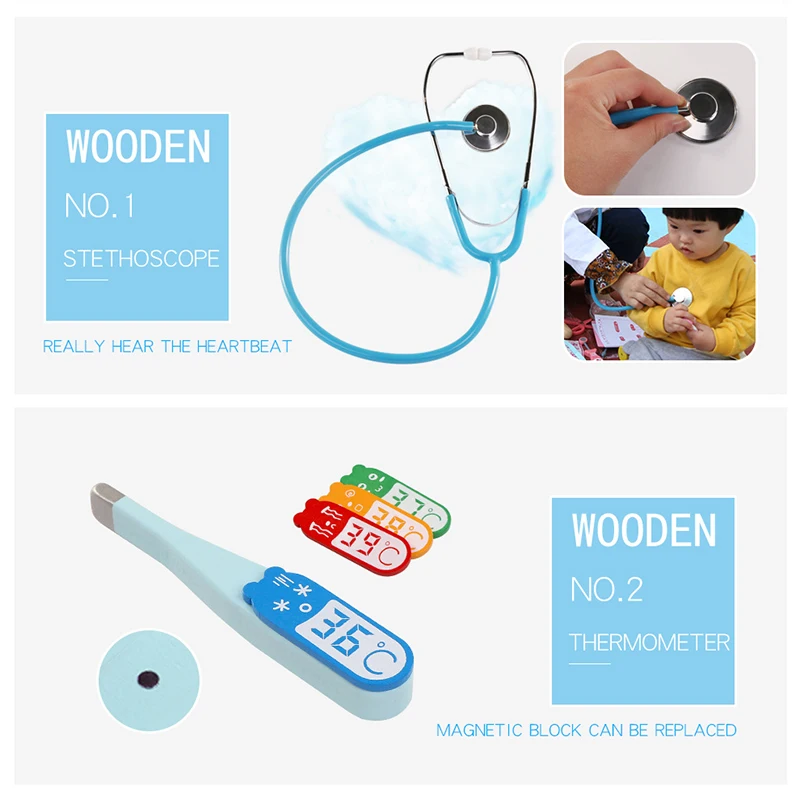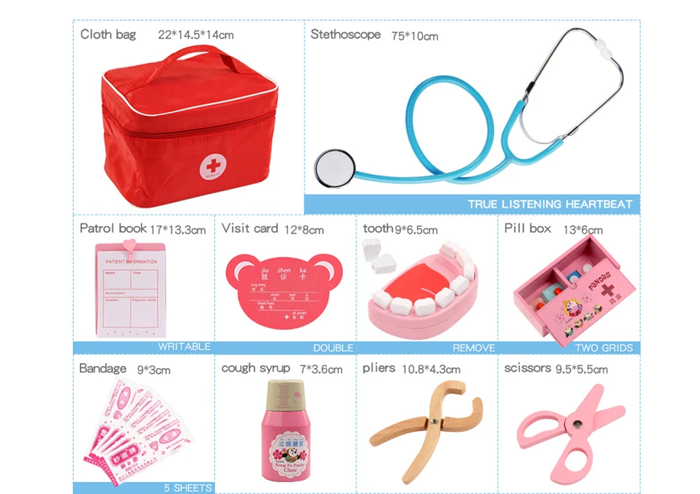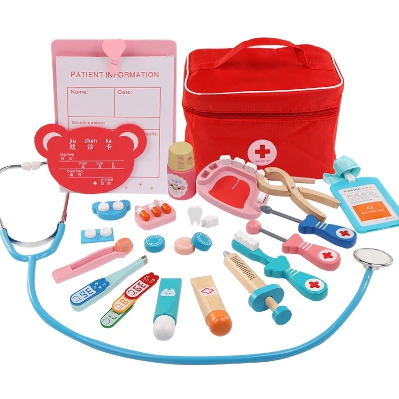 Популярная коробка для медицинских принадлежностей с красным крестом, набор игрушек-врачей, деревянные игрушки для ролевых игр, обучающие игрушки для детей раннего возраста