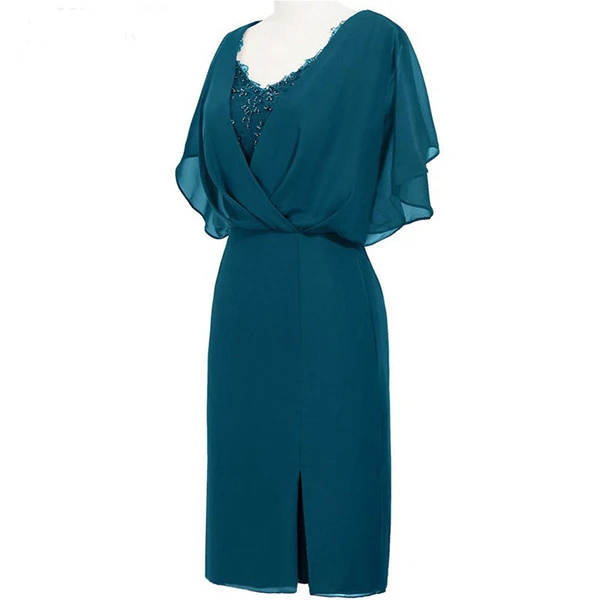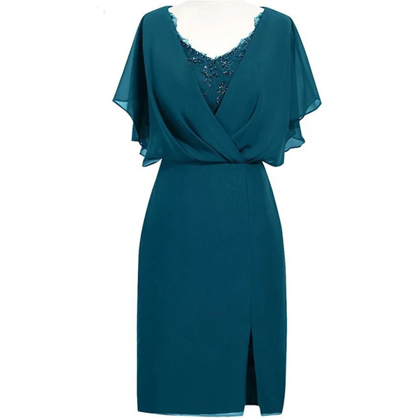 Короткое темно-зеленое платье для матери невесты 2020, платье с V-образным вырезом и короткими рукавами до колен для свадебной вечеринки, платье для матери невесты