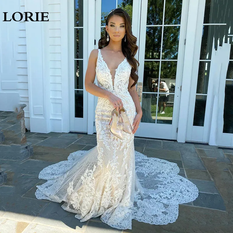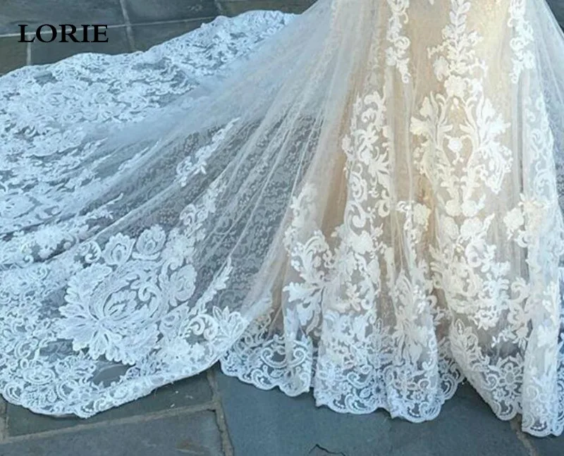 Свадебные платья с юбкой-годе LORIE, кружевное мягкое Тюлевое платье с тонкими бретельками и шлейфом, 2020