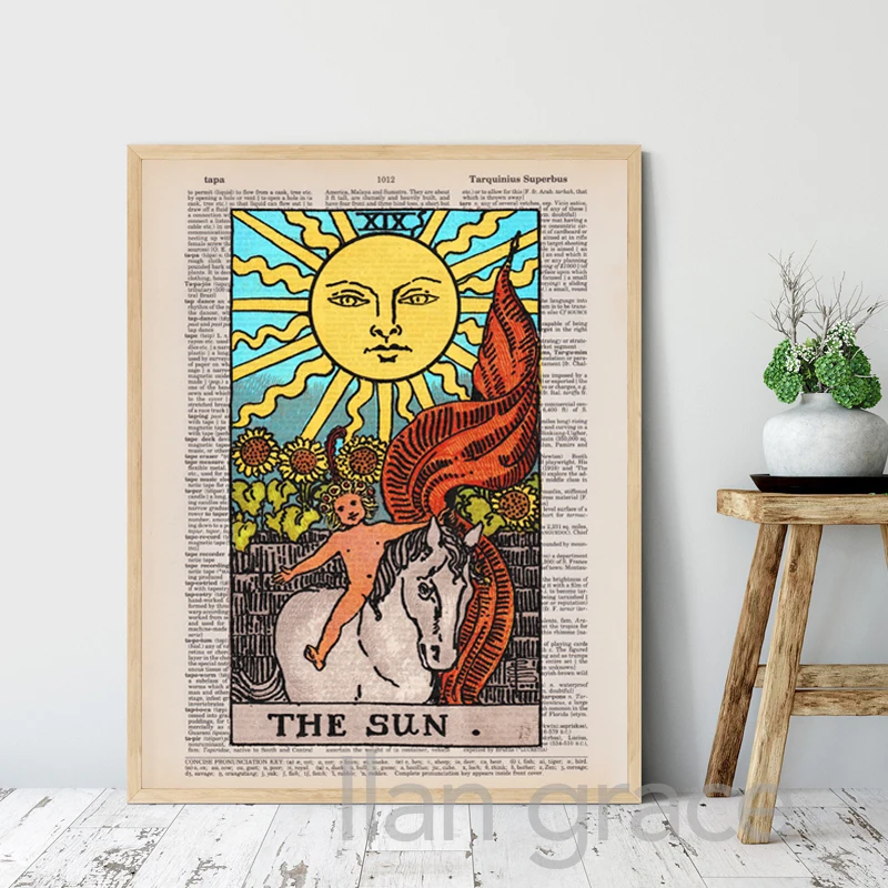 The Sun Tarot, винтажный постер с иллюстрацией, большая Аркана, Карта Таро, печать на холсте, настенное художественное украшение, картина, подарок гадалки