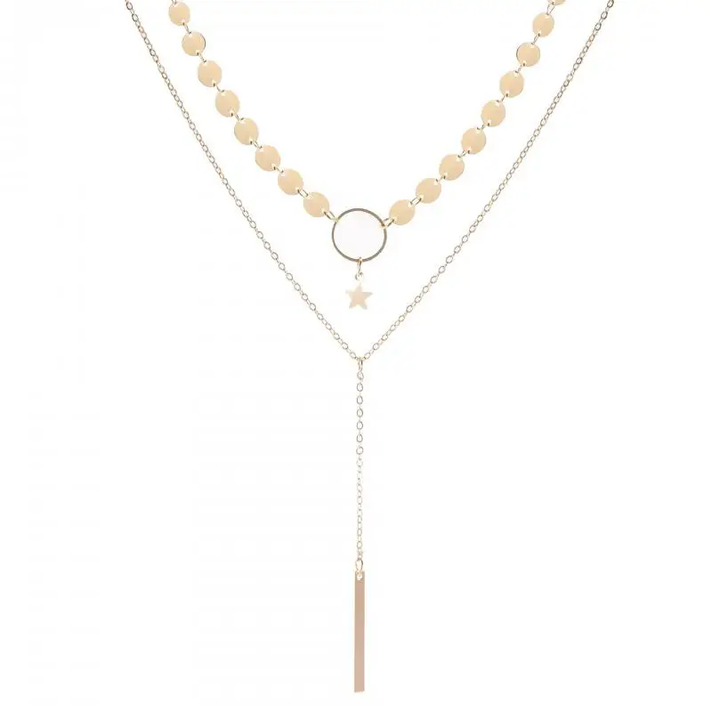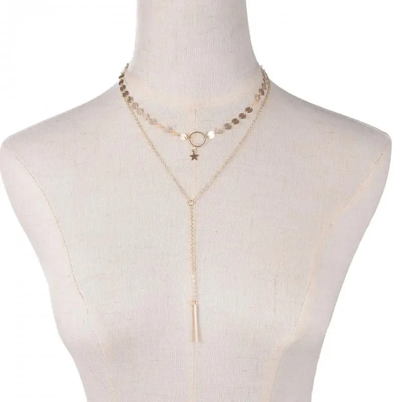 2020 корейское Модное Новое ожерелье, сексуальное простое уличное ожерелье ручной работы, с блестками, звездой, кисточкой, двумя ключицами, ожерелье Portagioielli