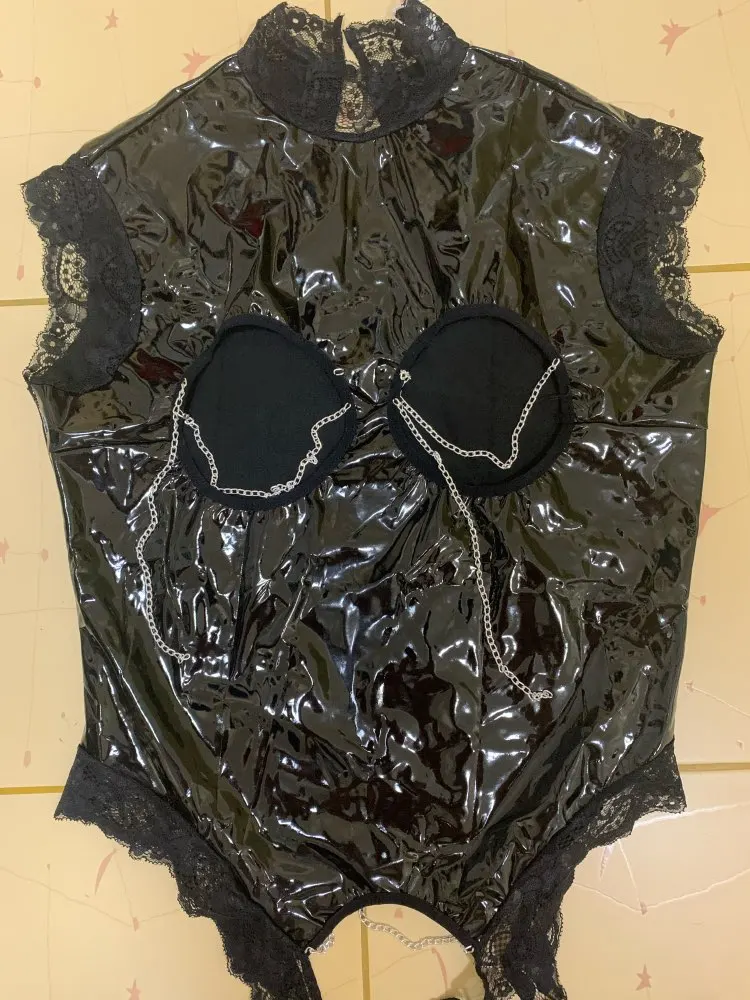 Женское нижнее белье, боди без бретелек, влажный внешний вид, лакированная кожа, с высоким воротом, без рукавов, с открытой грудью, кружевной обрезанный сексуальный трико, боди