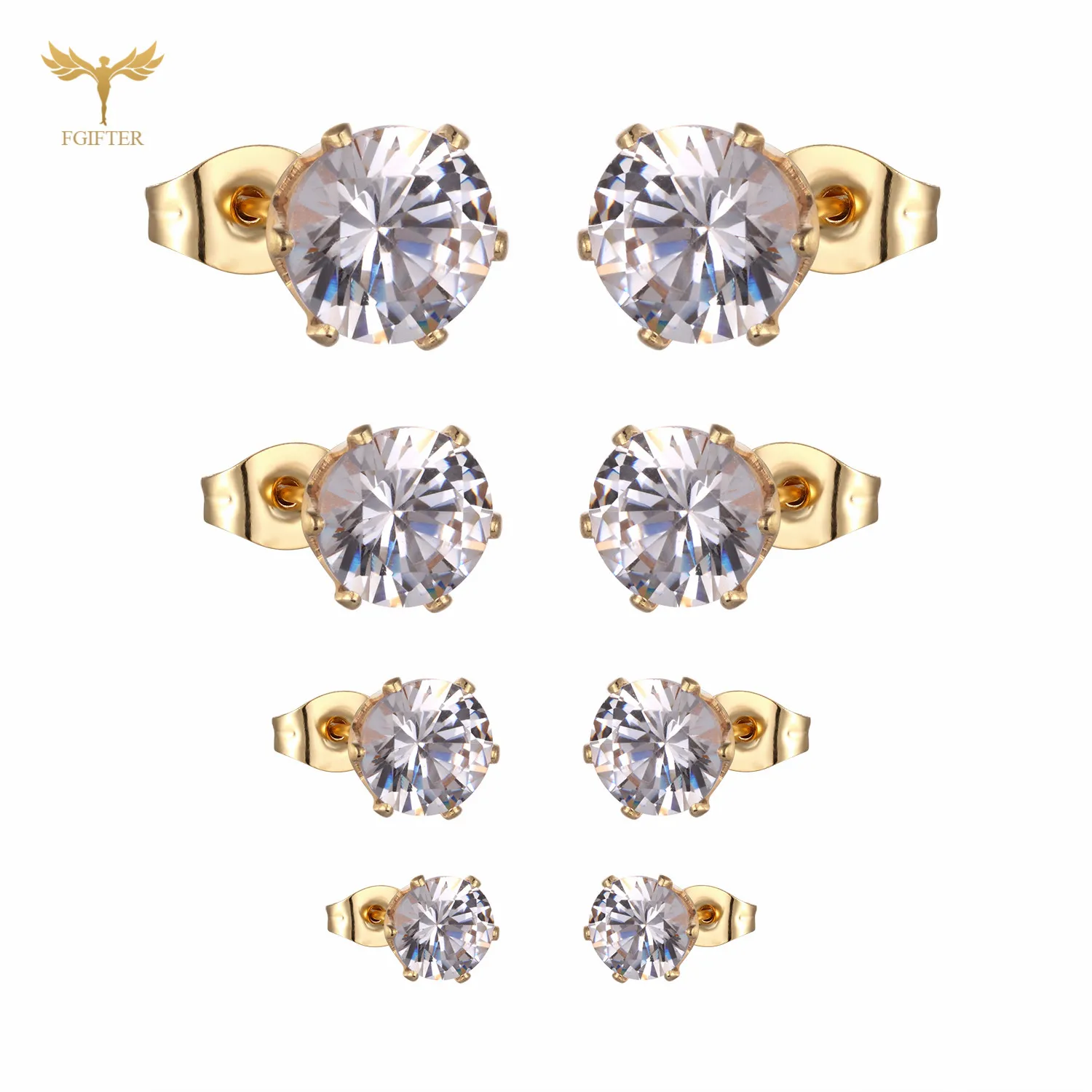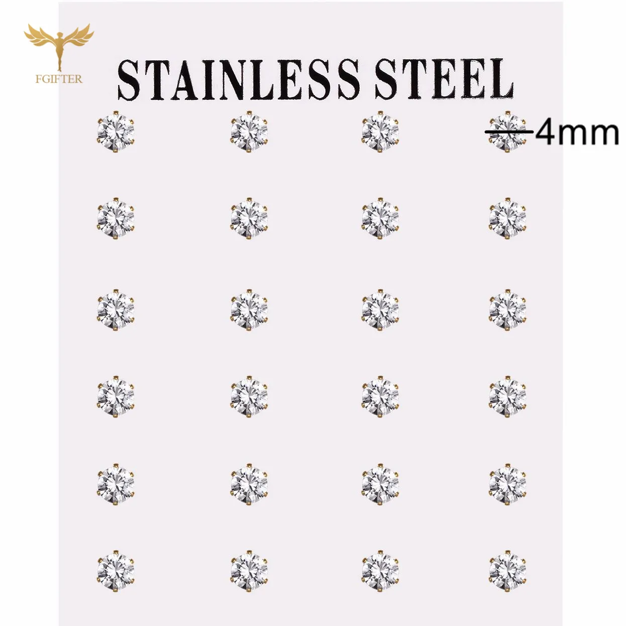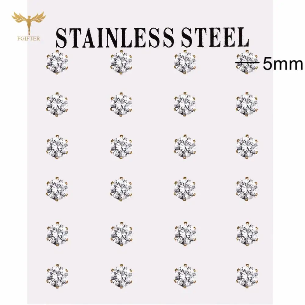 Набор круглых серег из нержавеющей стали с покрытием из желтого золота 18 карат, 12 пар