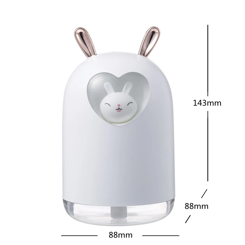 Милый кролик, увлажнитель воздуха, 300 мл, милый питомец, ультразвуковой, холодный туман, Арома масло, диффузор, Романтический Цвет, светодиодный, USB увлажнитель