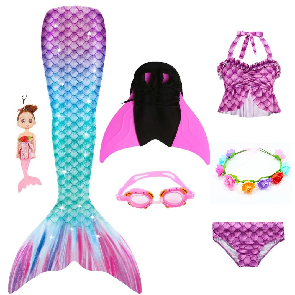 2020 Hot New Swimming Mermaid TailsKids Costume With Monofin Fin Flower Doll Goggles