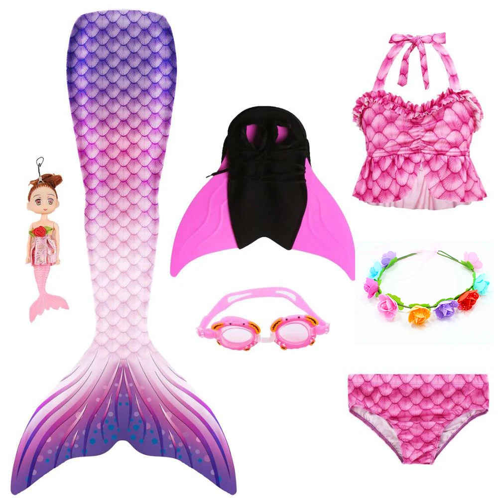 cosplay mermaid tailwith Monofin/Fin Flower Doll Goggles bikini suit