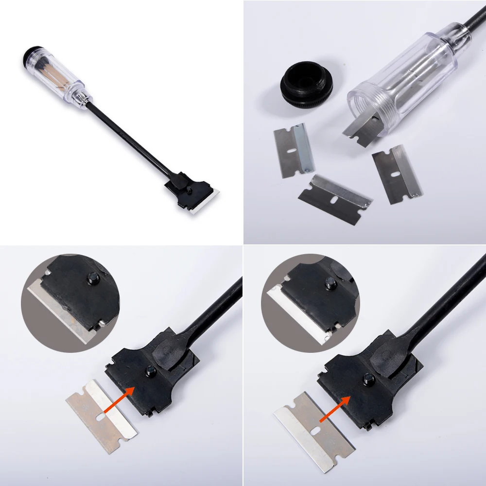 Параметры Продукт: скребок с длинной ручкой и лезвиями Размер скребка: 28,3x4 см Посылка входит: Набор A 1 скребок с ручкой 2 замененных лезвия Набор B 1 скребок с ручкой 100 сменных лезвий Особенности 1. Длинная ручка позволяет удобно чистить клей и наклейки. 2. Запасные лезвия можно хранить в ручке коробка для лезвий. 3. Лезвия из углеродистой стали хорошего качества. Также вы можете заменить скребок лезвиями. Это прочный инструмент для чистки. Применение 1. Удалитель старой виниловой пленки и клея, щетка для чистки автомобиля, инструменты для стайлинга автомобиля 2. Инструмент для наклеивания автомобильной пленки, специальные инструменты для наклеивания строительной пленки, инструмент для установки виниловой пленки, инструмент для тонировки окон, инструмент для установки настенной бумаги, инструменты для обертывания автомобиля. 3. Бытовой стеклоочиститель, автомобиль/дом/строительные инструменты, промышленные инструменты.
