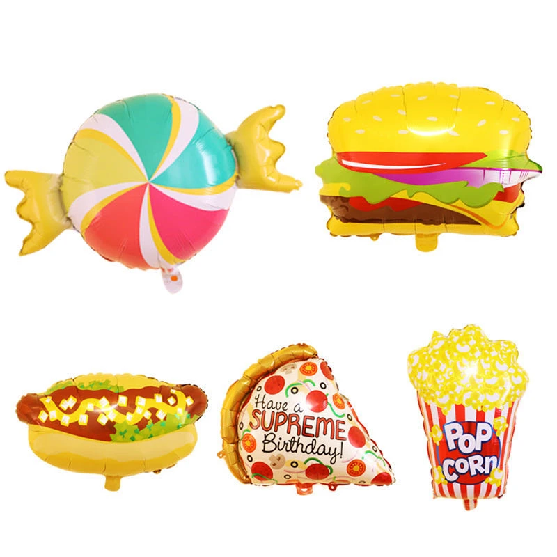 Воздушные шары из фольги в виде пончиков, мороженого, попкорна, фру...