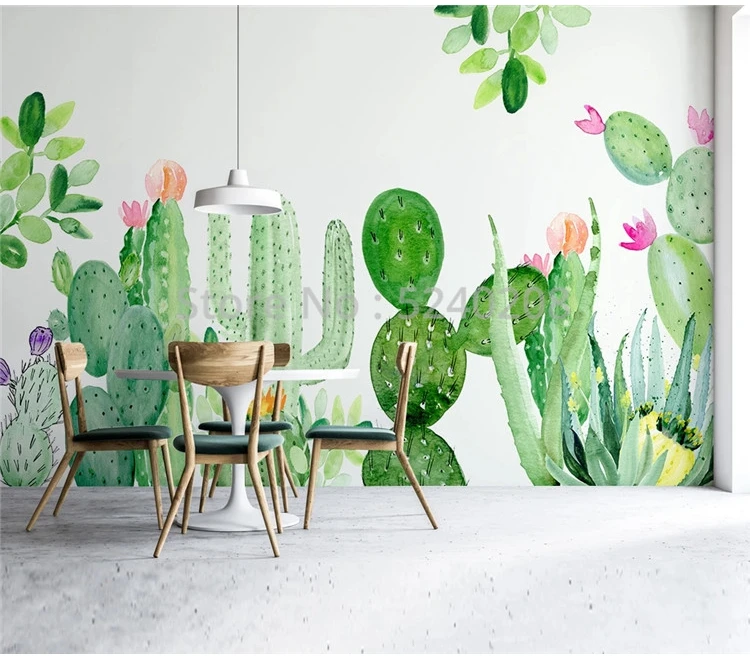 Пользовательские фото обои современные 3D Ручная роспись кактус тропический завод росписи гостиной спальни самоклеющиеся водонепроницаемые наклейки