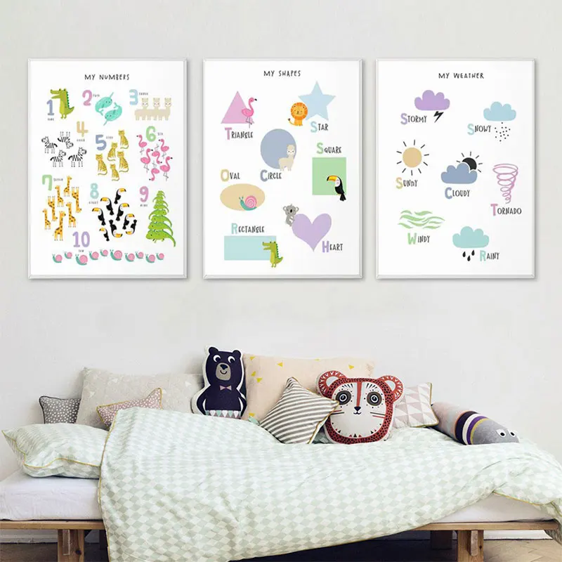 Плакаты с цифрами и буквами алфавита, детские образовательные плакаты, настенные художественные украшения для детского сада, декоративные картины