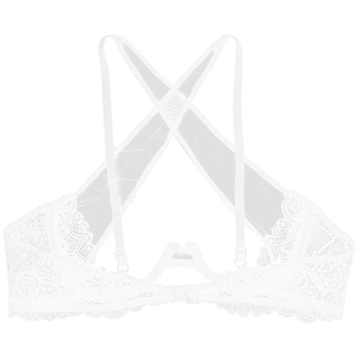Бюстгальтер женский прозрачный на косточках, кружевной бюстгальтер без косточек, эротический Бралетт с перекрестной Прозрачное нижнее белье в сетку спереди, хит открытые чашечки