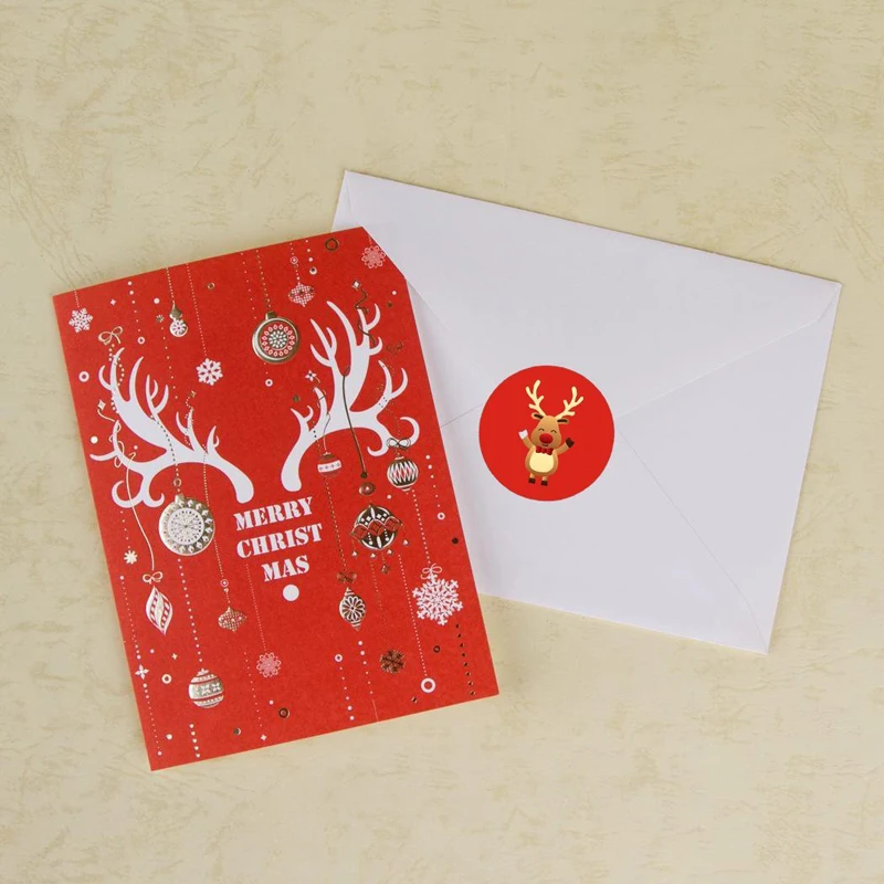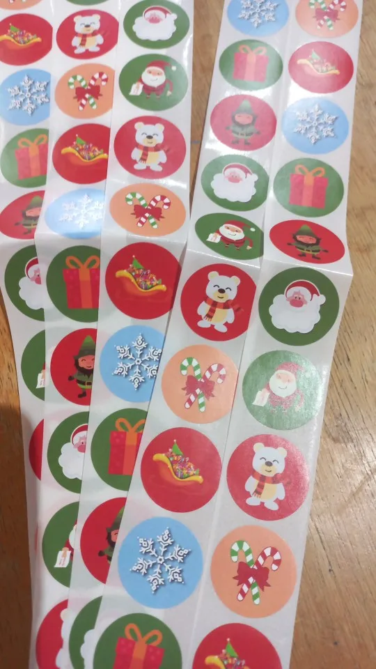 Декоративные наклейки, которые будут сохранены упаковки будущих рождественских подарков.