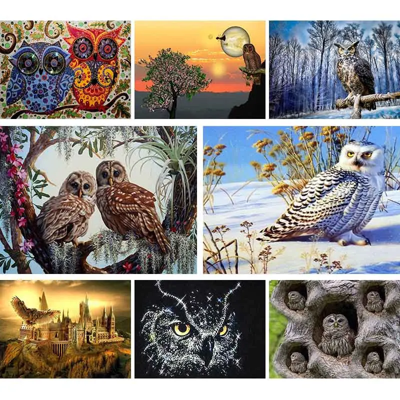 Искусственная живопись, Сова, животное, строительный замок, мозаика для вышивки крестиком, ремесла, домашний декор T49