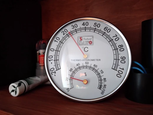 Оказался на удивление точным. Поставил рядом с двумя электронными термогигрометрами - температура практически не отличается, гигрометр чуть подкорректировал винтом и ОК. Сдела качественно, большой, смотрится хорошо.