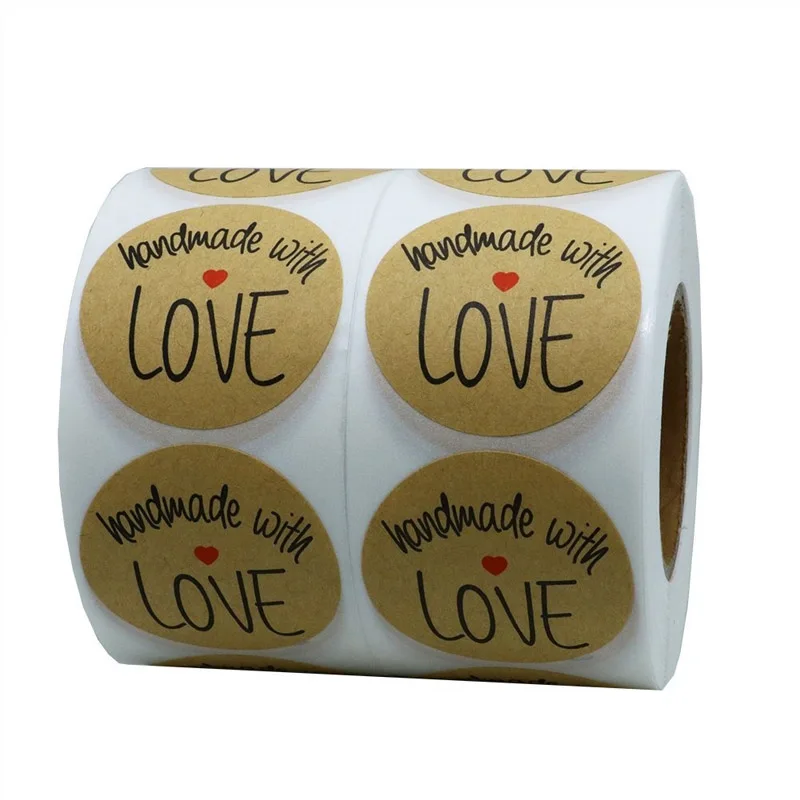 Наклейки из крафт-бумаги "ручная работа с любовью", 25 мм, круглые, клейкие, наклейки для выпечки, украшения для свадьбы, вечевечерние, наклейки, 50 шт.