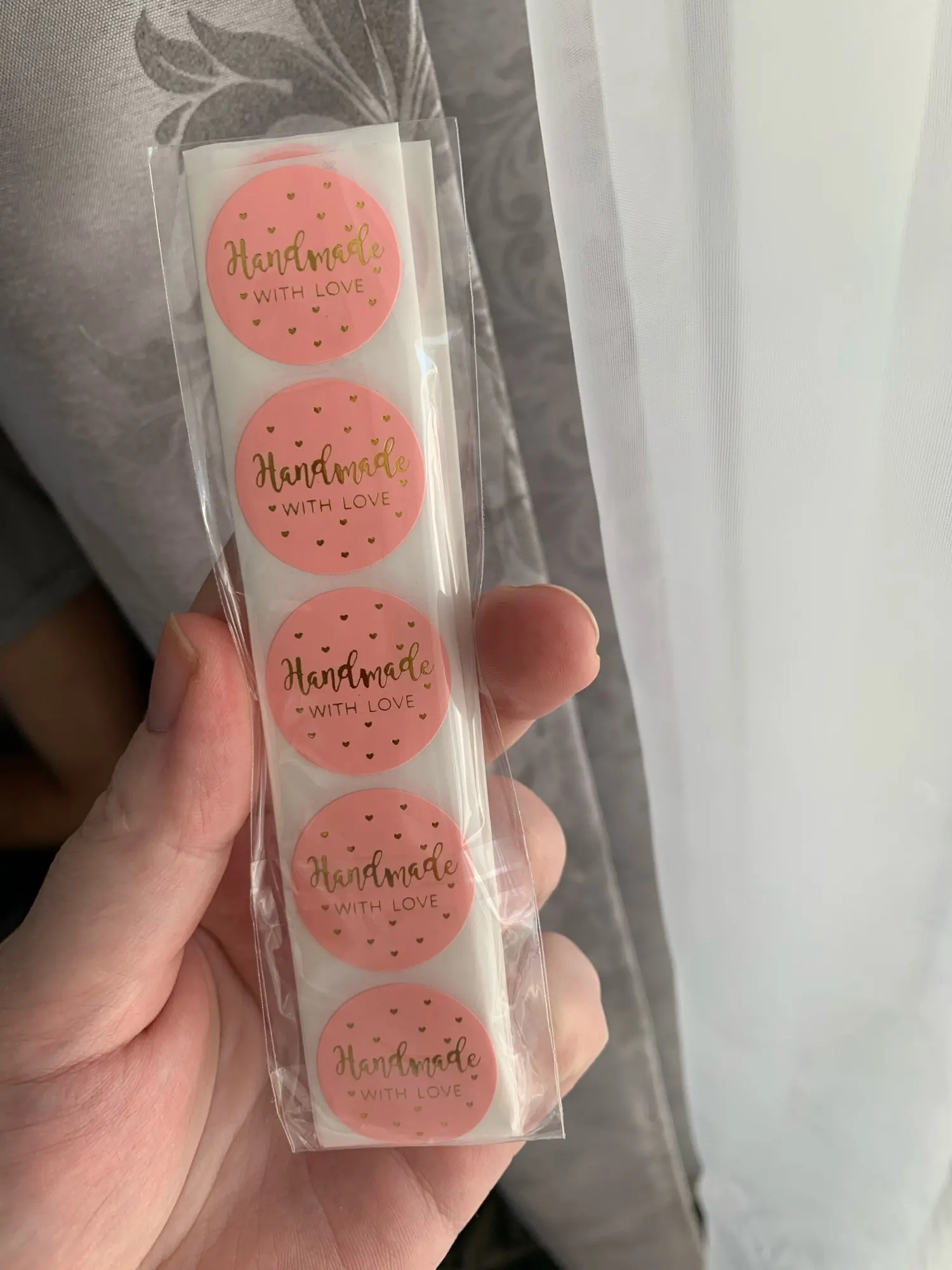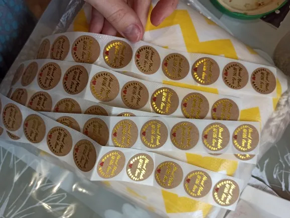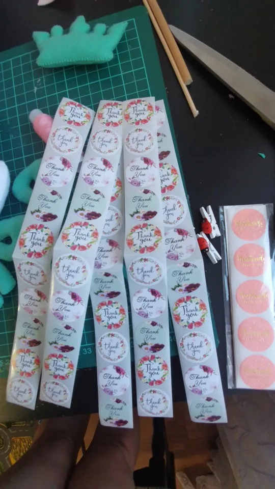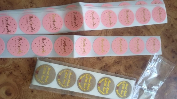 Наклейки яркие, 50 штук пришли не в мотке, а полосами по 10 штук. Посылка отслеживалась, пришла в Украину за 15 дней