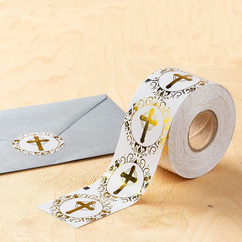1 дюйм, позолоченная круглая наклейка с крестом, Религиозная Христианская молитвенная наклейка, печать на конверте, этикетка 50 шт.рулон