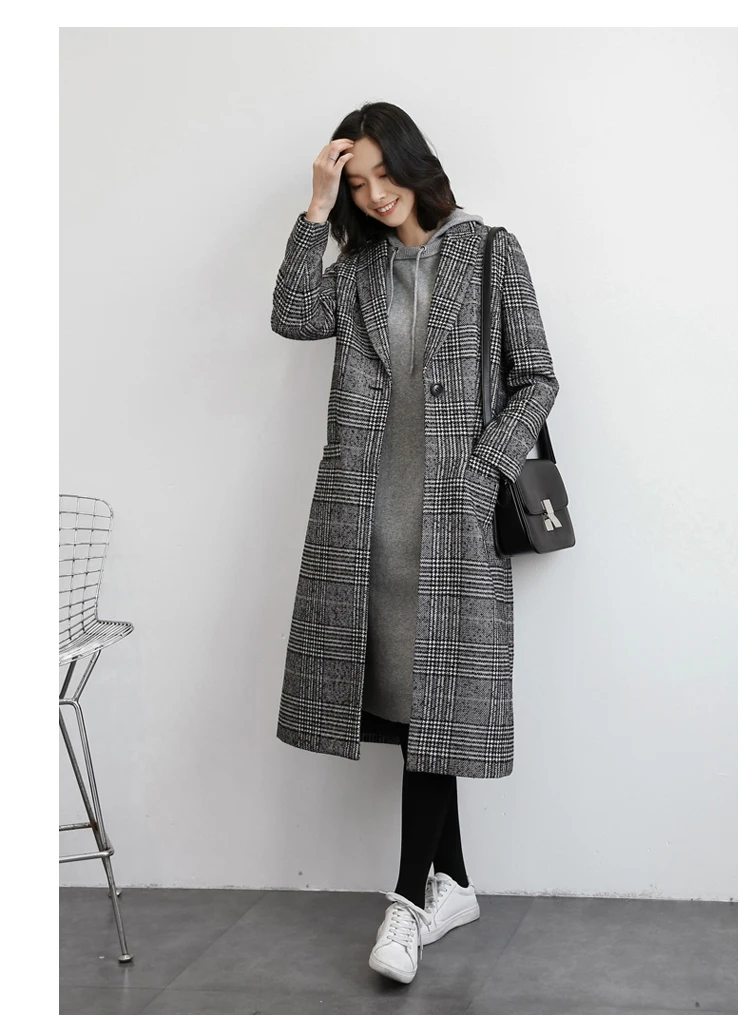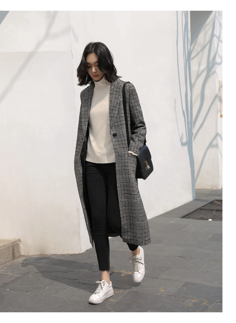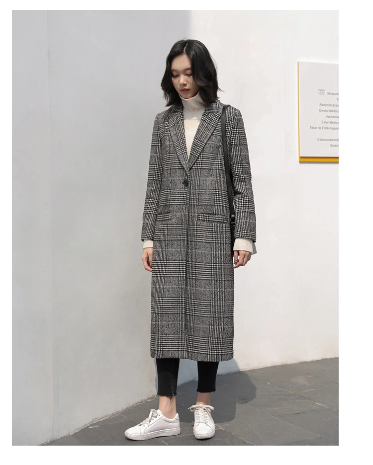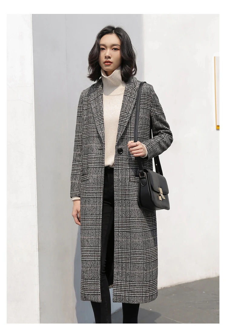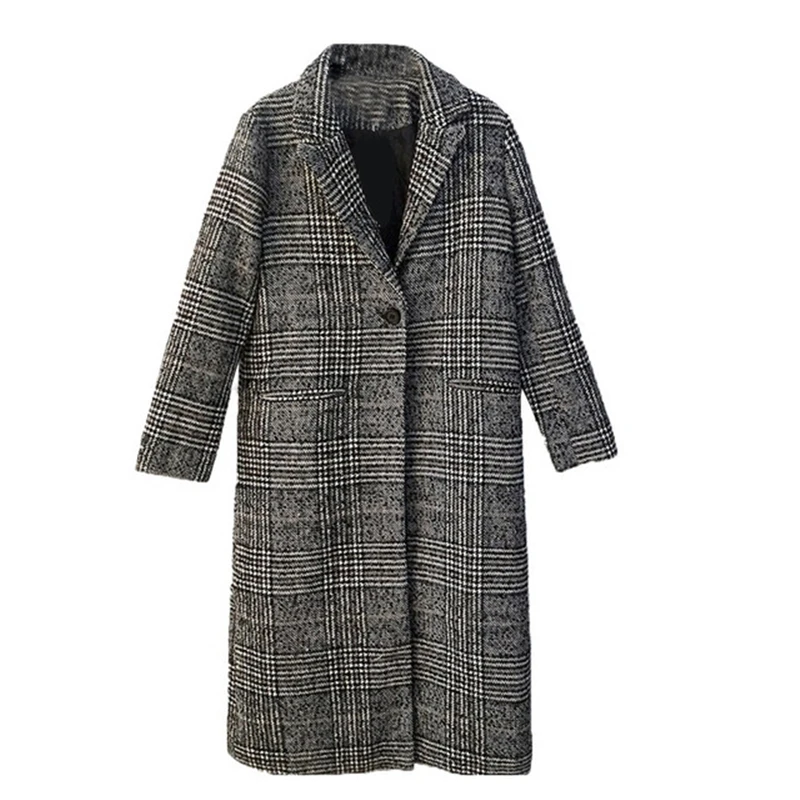 Весенне-осеннее женское Шерстяное клетчатое пальто, новое модное длинное шерстяное пальто, женские зимние шерстяные куртки, женская верхняя одежда