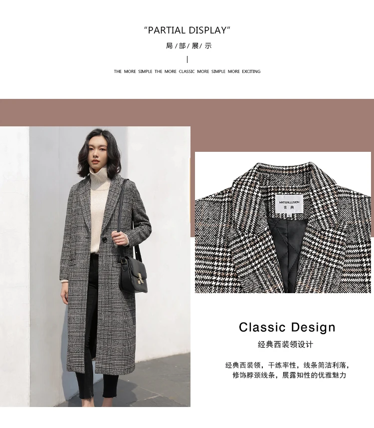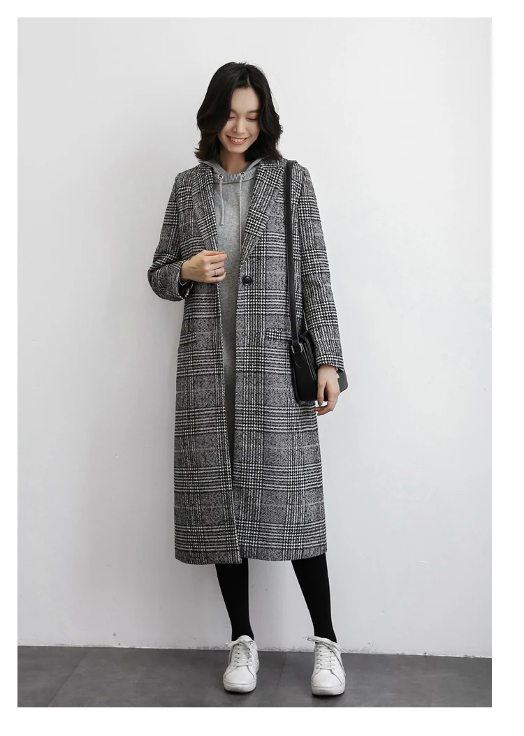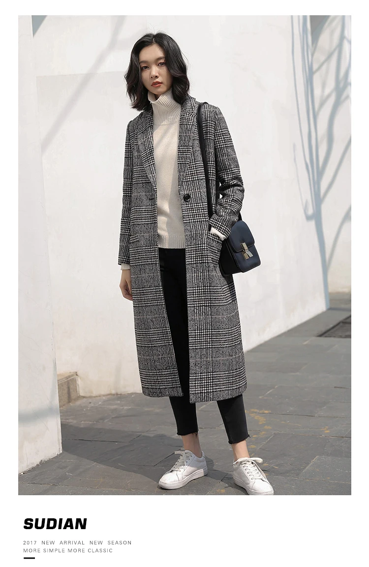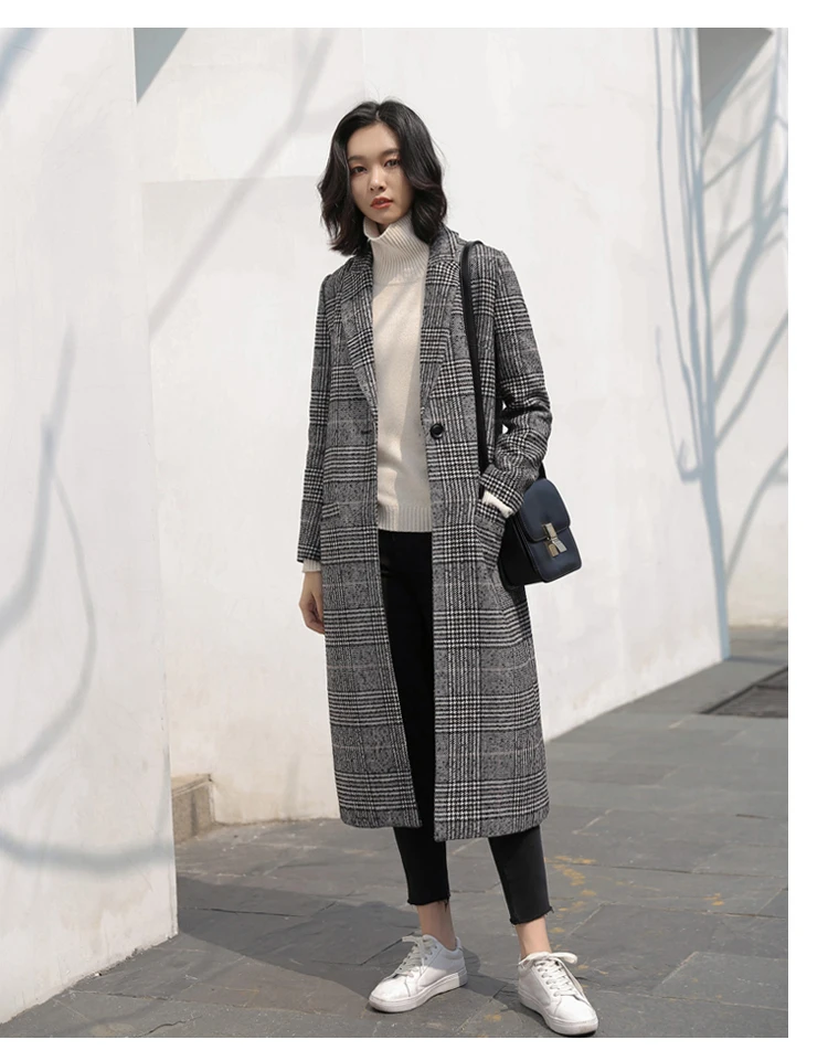 Весенне-осеннее женское Шерстяное клетчатое пальто, новое модное длинное шерстяное пальто, женские зимние шерстяные куртки, женская верхняя одежда