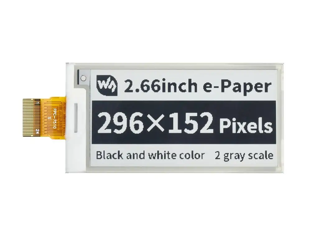 2,66 дюймовый E-Paper E-Ink Raw Display, 296 × 152 пикселей, черный/белый двойной цвет, SPI интерфейс, без PCB