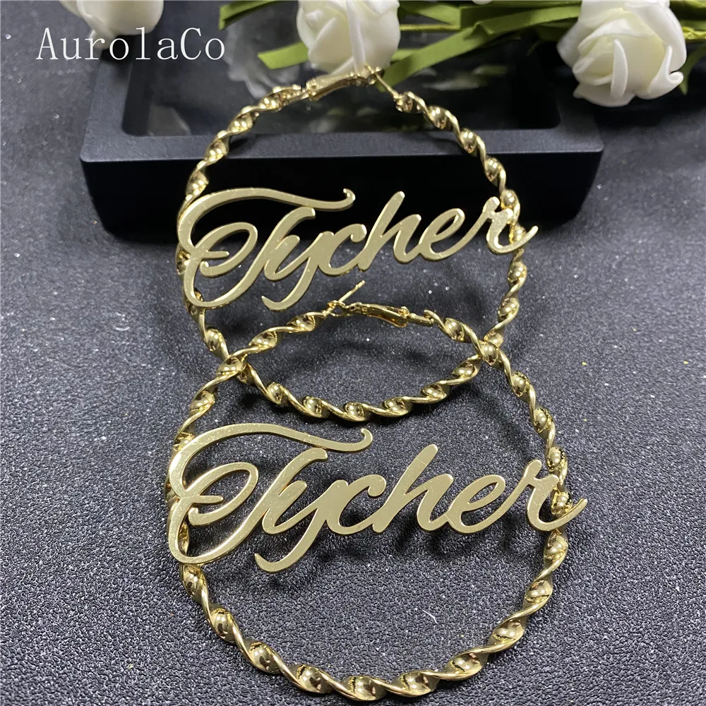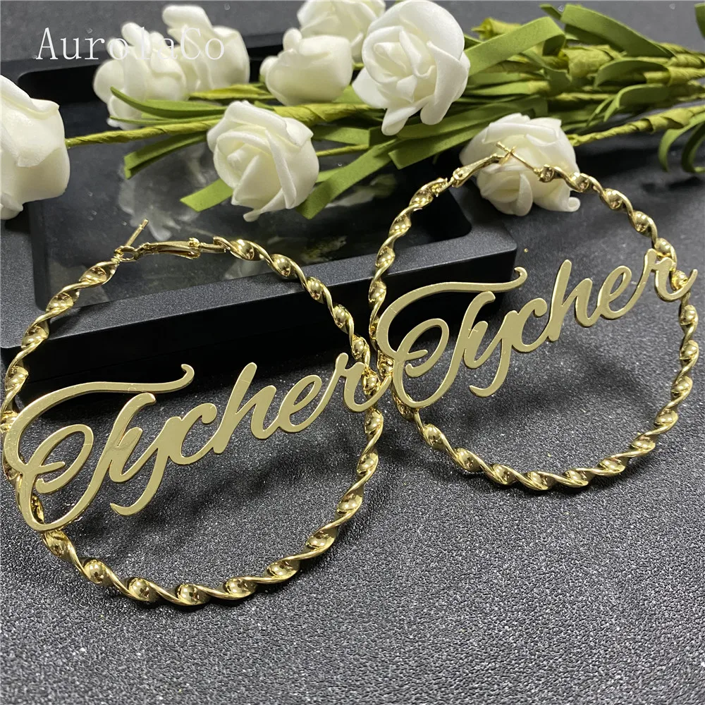 Серьги AurolaCo с именем на заказ, персонализированные круглые серь...
