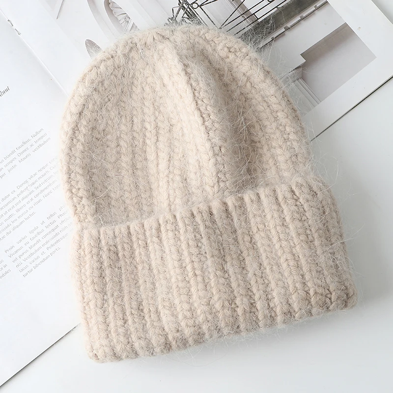 Мягкая теплая шапка из зимняя женская шапка-ного кроличьего меха, плотная вязаная шапка из шерстяной берет ангорской шерсти