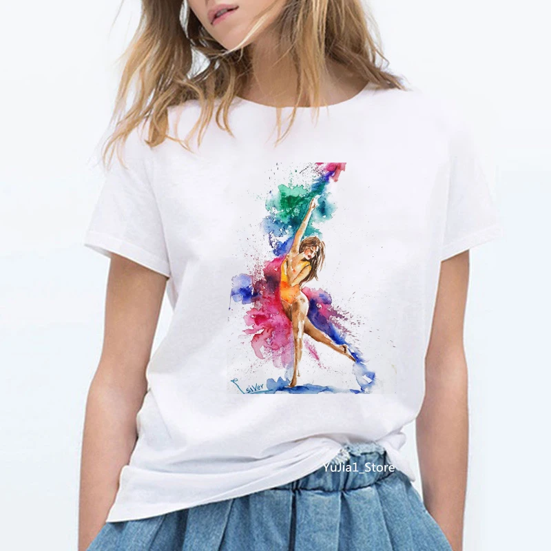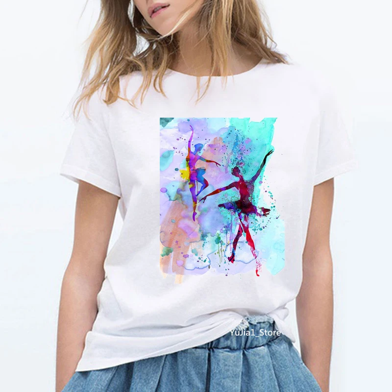 WVIOCE летняя белая футболка с рисунком балерины, девушки, кавайная футболка для гимнастики, танцев, влюбленных, женский топ на заказ