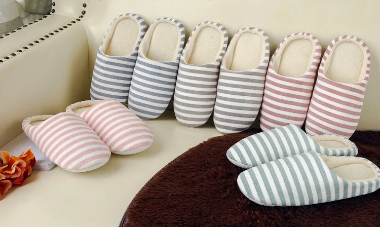 Зимние тапочки в полоску; Домашние теплые плюшевые тапочки унисекс; Домашние тапочки с мягкой подошвой для влюбленных; Мужская нескользящая обувь; Домашние тапочки