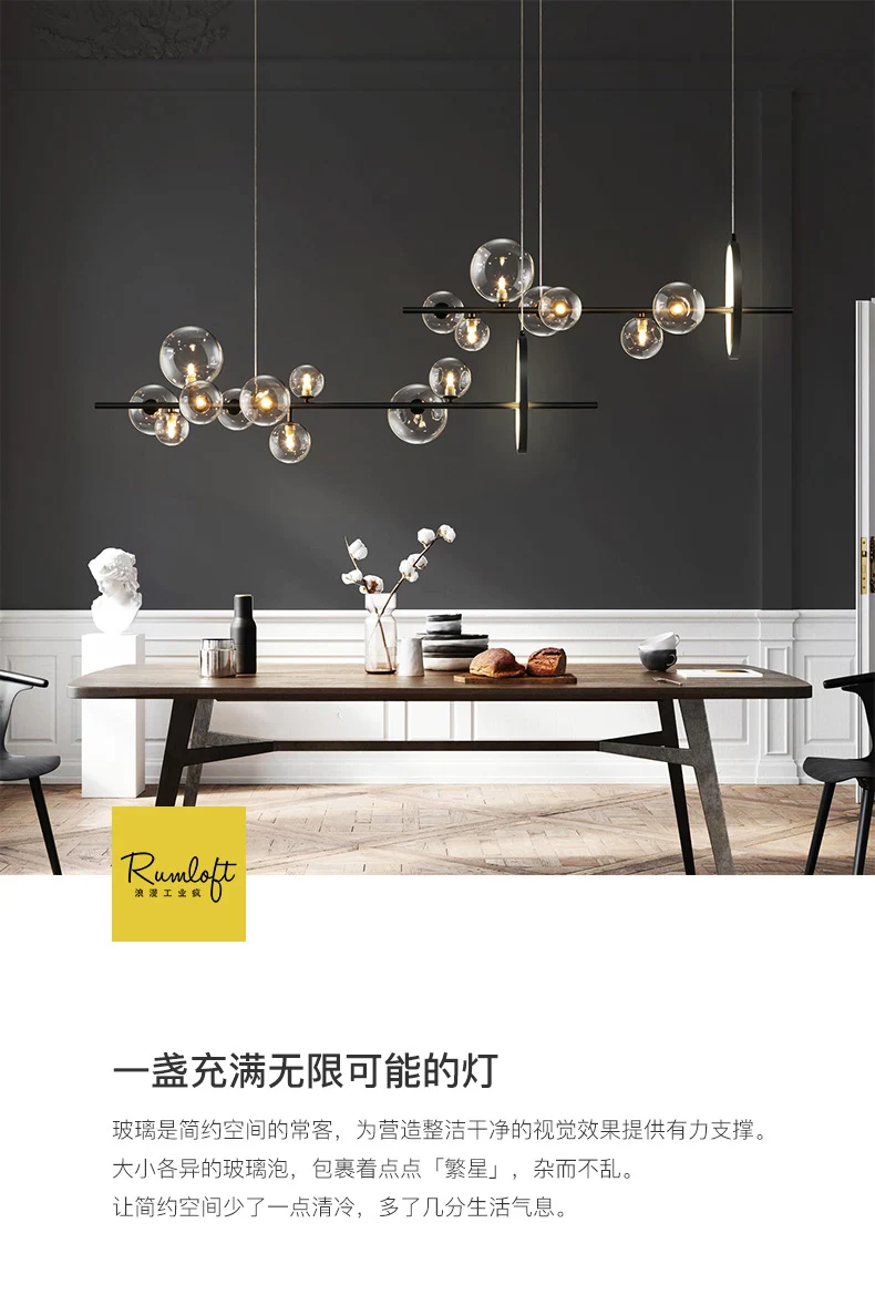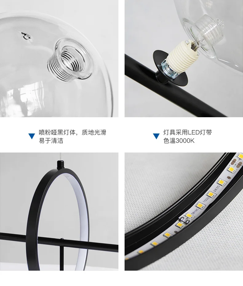 Nordic черный светодиодный Люстра светильник 710 Стекло пузырь абаж...