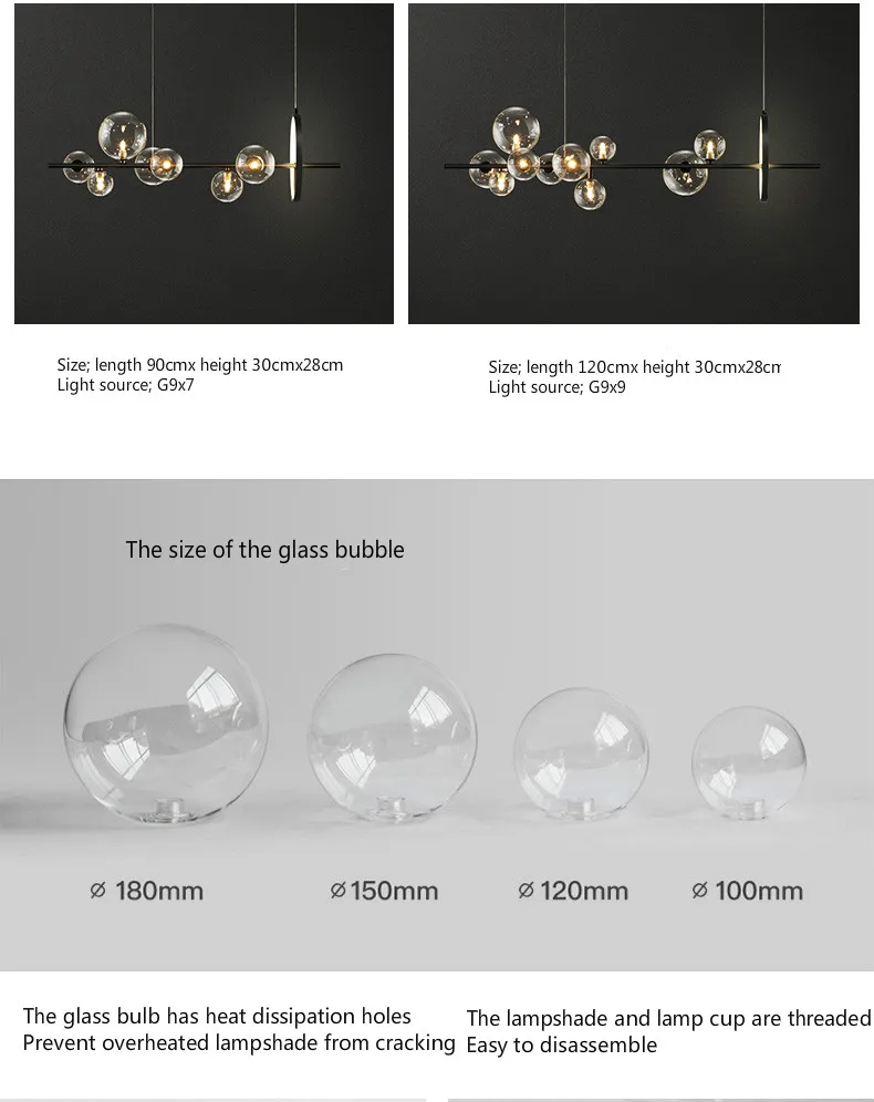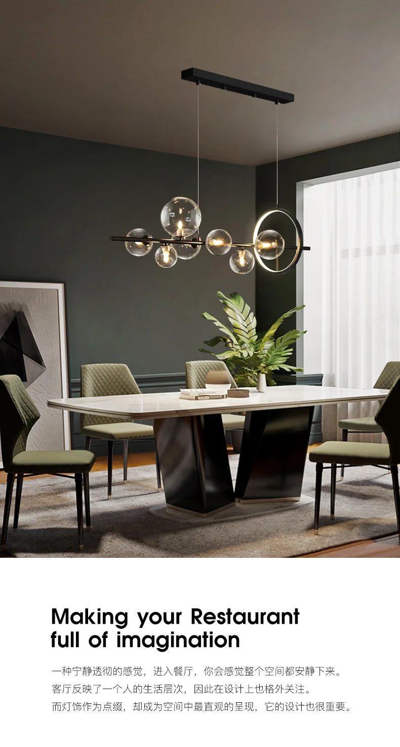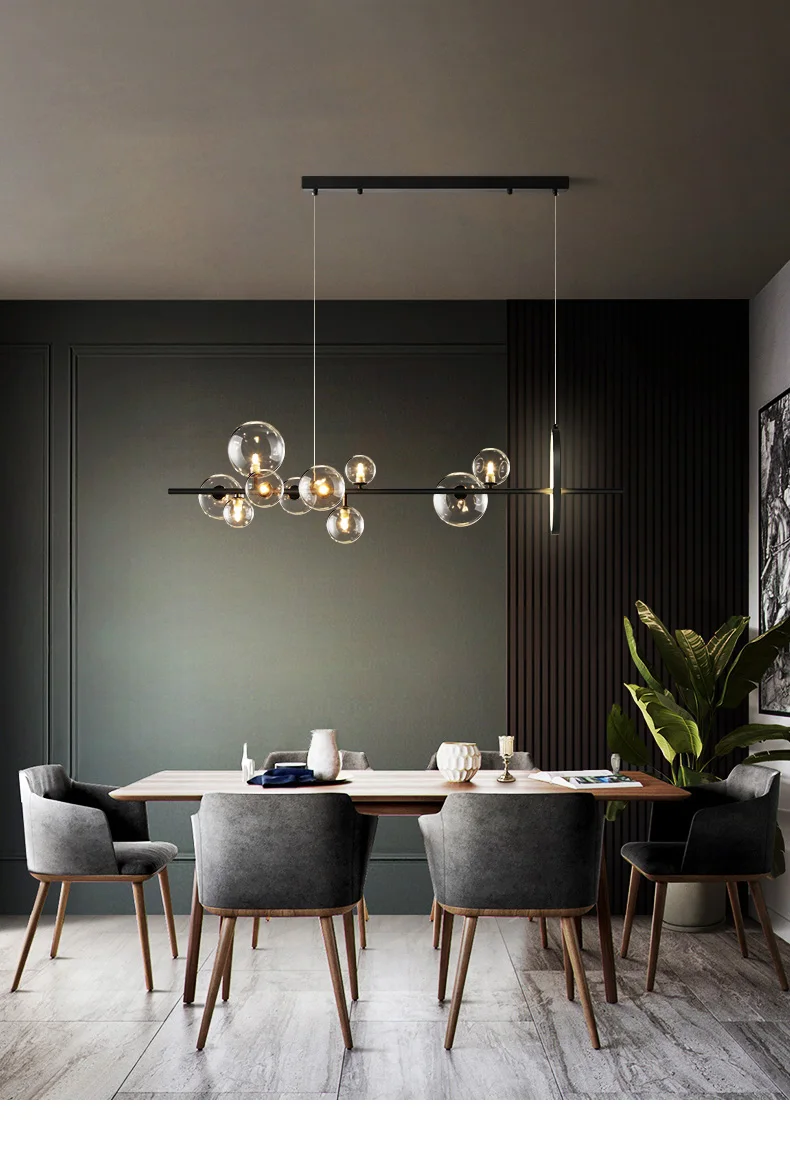 Черная светодиодная люстра с абажуром-пузырями, современное прозрачное стекло комнатное освещение для кухни, офиса, столовой, подвесной светильник