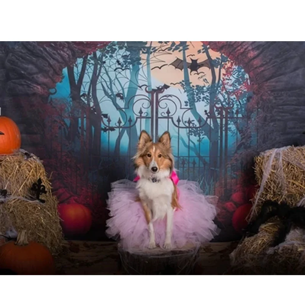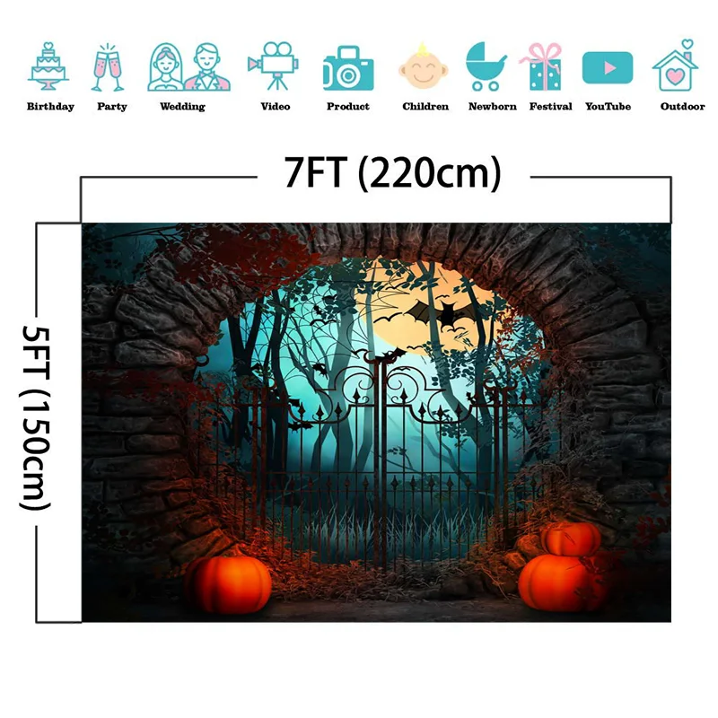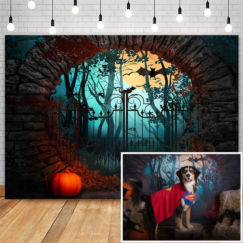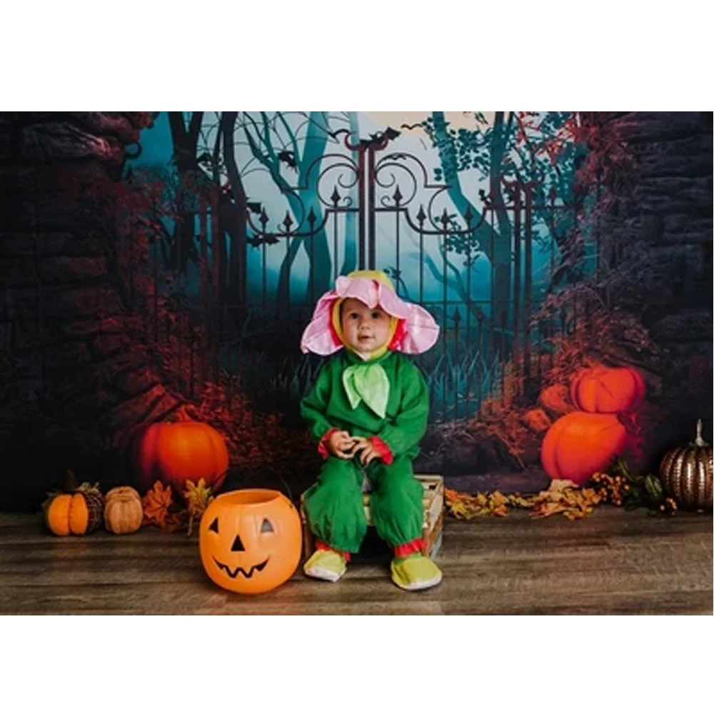 Mocsicka Хэллоуин тема фотография Фон Тыква Lron ворота черный фон с летучей мышью Декор фотосессия Фотостудия