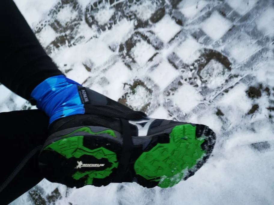 Ich verwende diese Gamaschen für Schnee. Wenn es nur noch vereinzelt Schneereste gibt, gehe ich gerne mit niedrigen Schuhe. Falls ich dann doch einmal im Schnee einbreche, verhindert die Gamaschen das eindringen von Schnee. Bei tiefen Schnee verwende ich richtige Gamaschen.