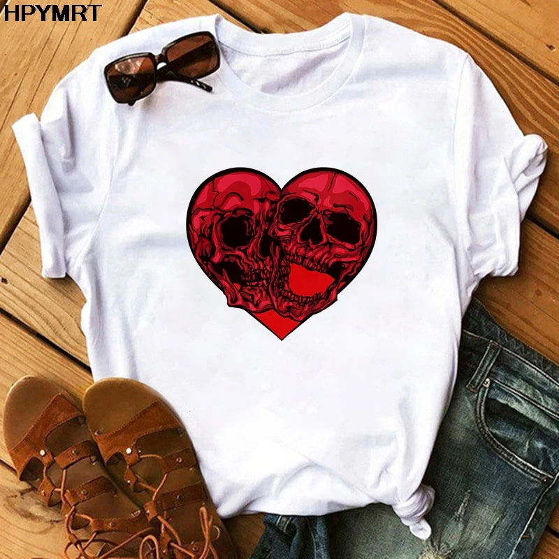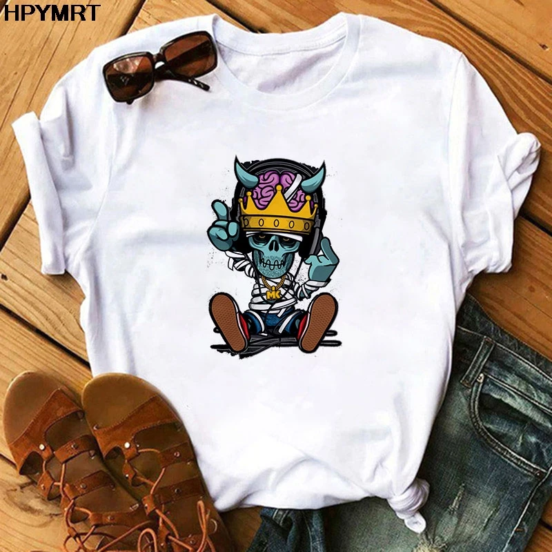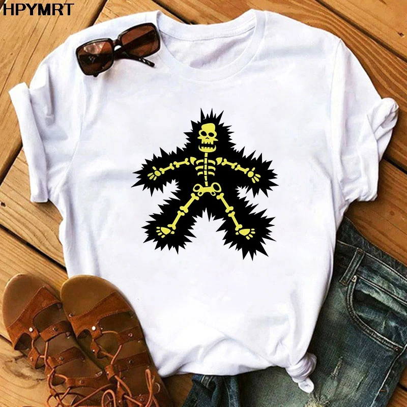 Модный Топ Женская футболка с принтом скелета Harajuku футболка жен...